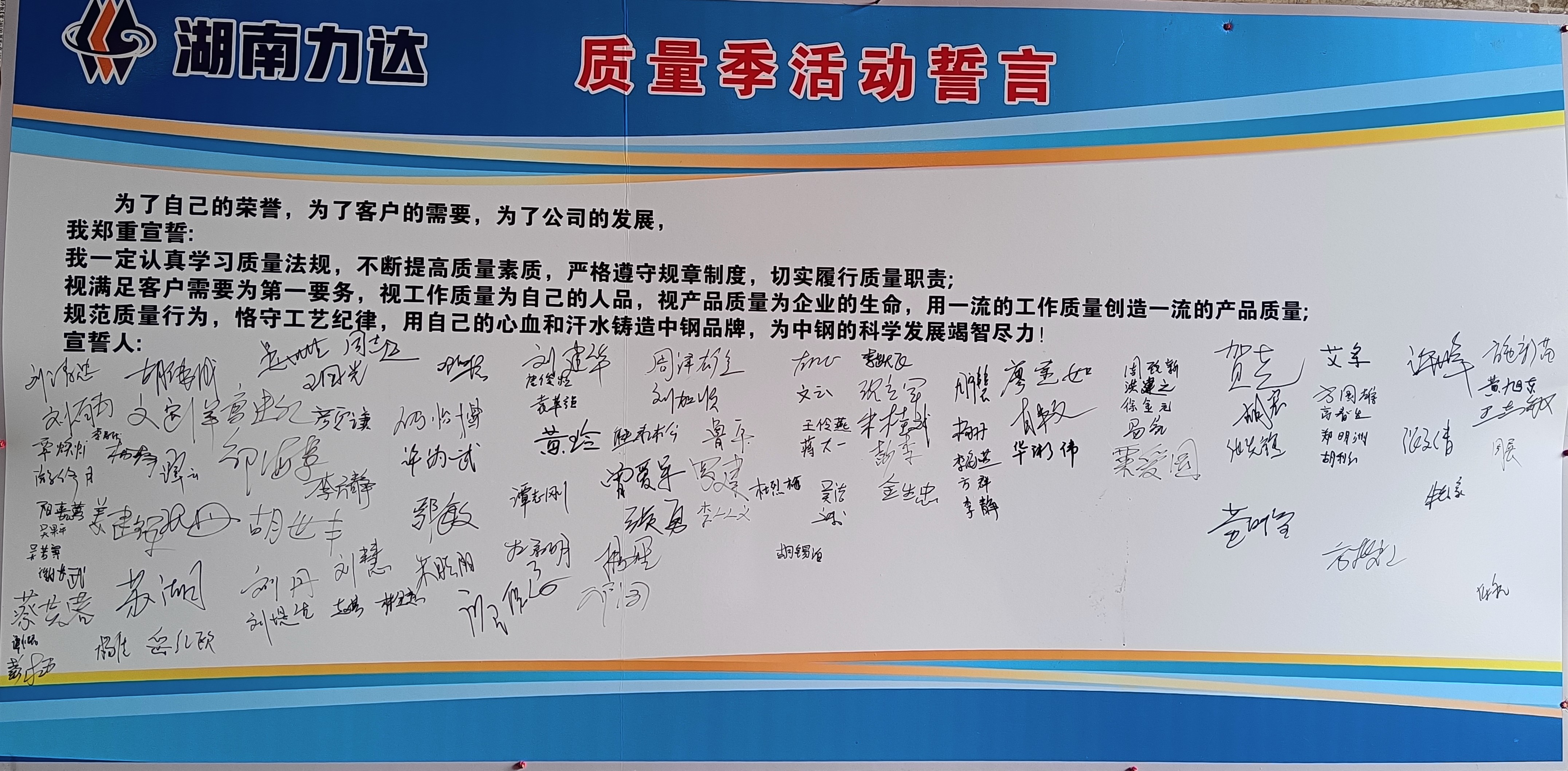 全体人员在“质量季活动誓言”签名墙上进行签名。
