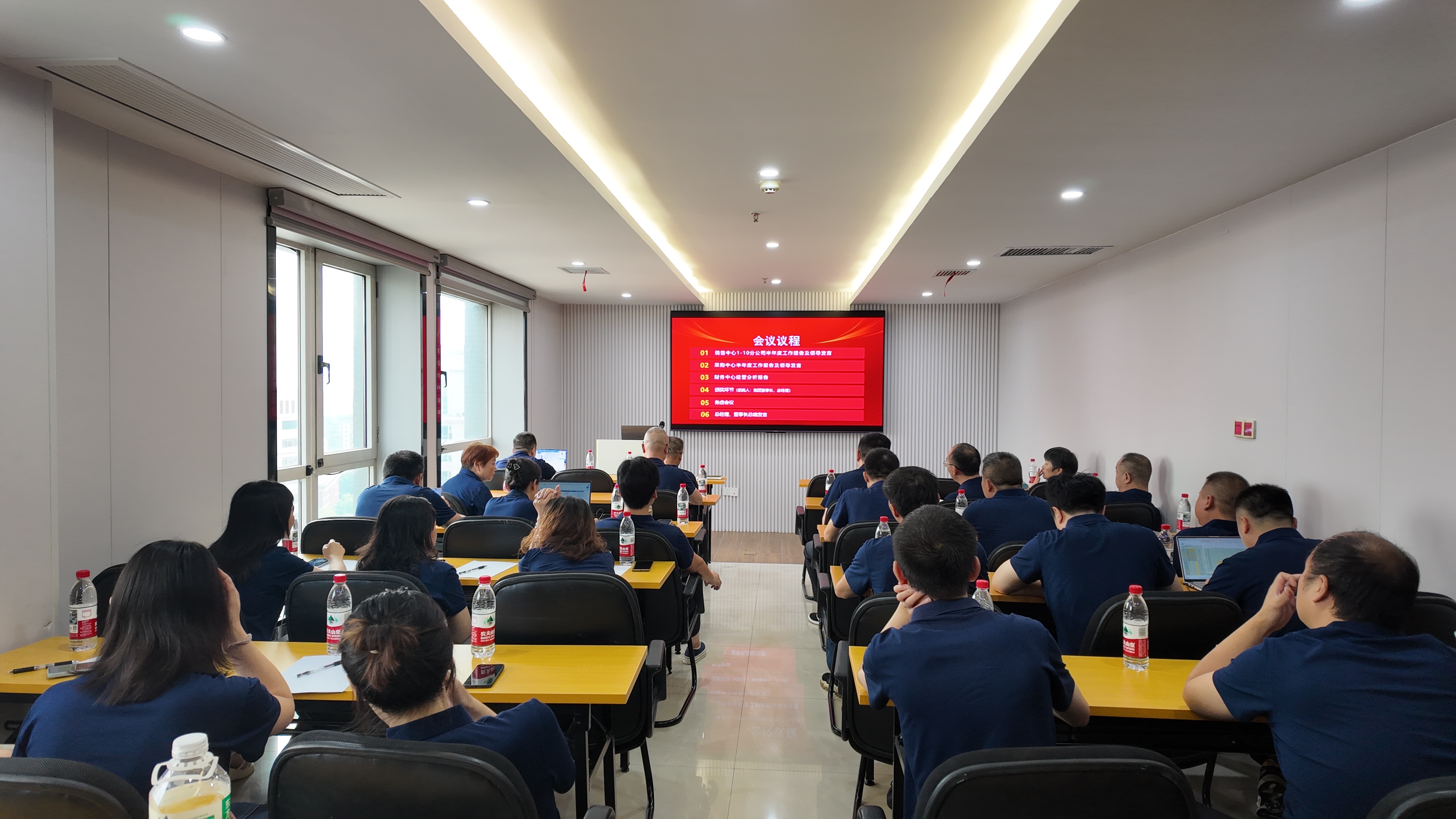 会议伊始,贸易公司销售中心、采购中心、财务中心分别就上半年工作进行了详细的数据分析汇报。