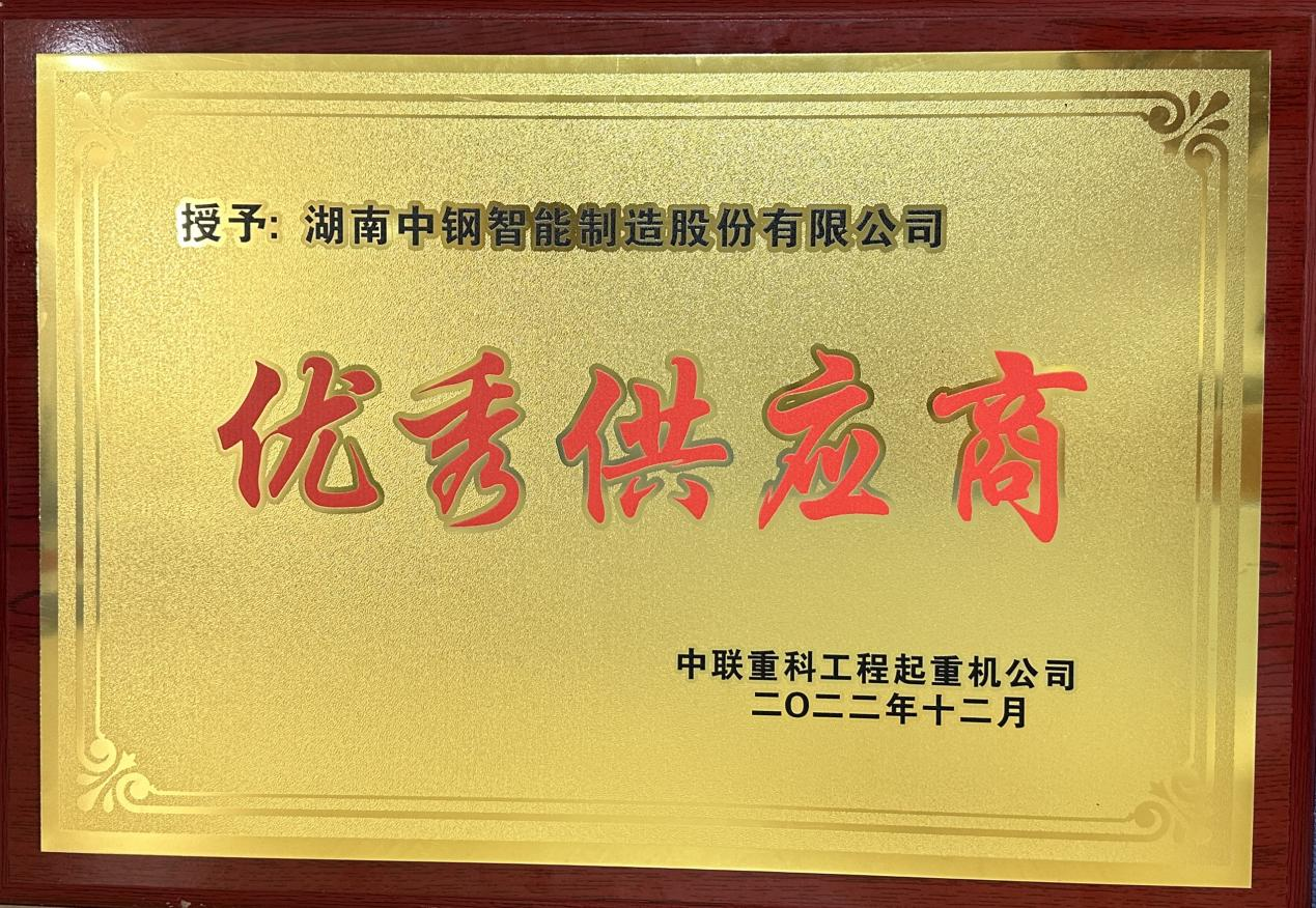 近日,开云手机平台_开云(中国)贸易分公司荣获中联重科工程起重机公司“优秀供应商”荣誉称号。该荣誉是对湖南中钢产品质量和服务质量的高度认可。