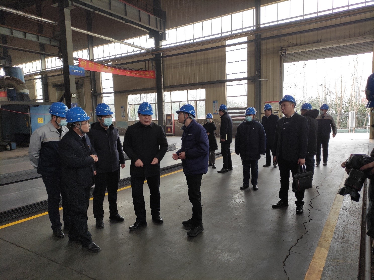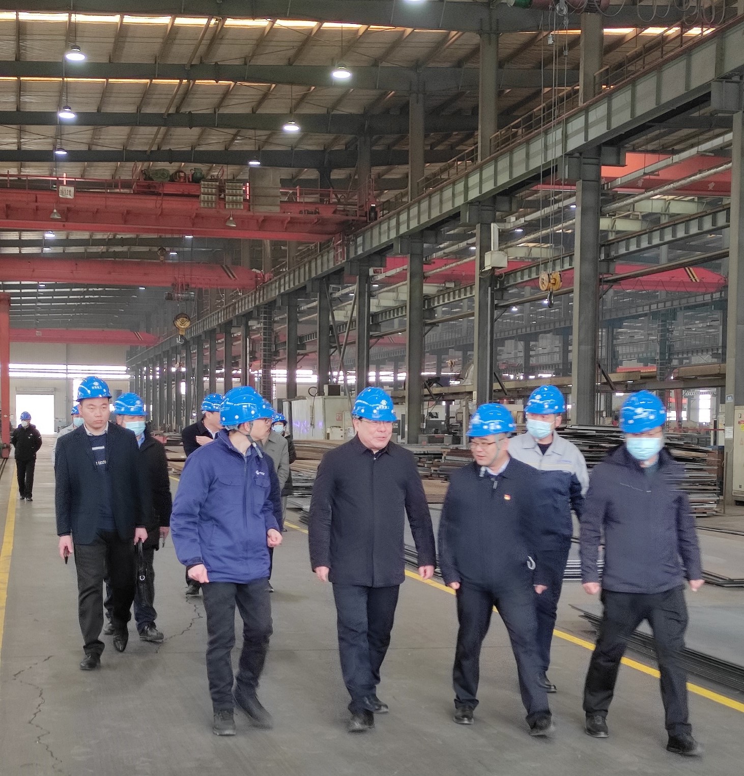 2023年2月2日上午,渭南市高新区主任蔡军、副主任白雪亮及高新区管委会相关部门领导一行莅临陕西西部重工有限公司进行调研。公司副总经理丁嘉奕、杨朋涛、综合部陈广利、制造部谭义清等热情接待来访领导。
